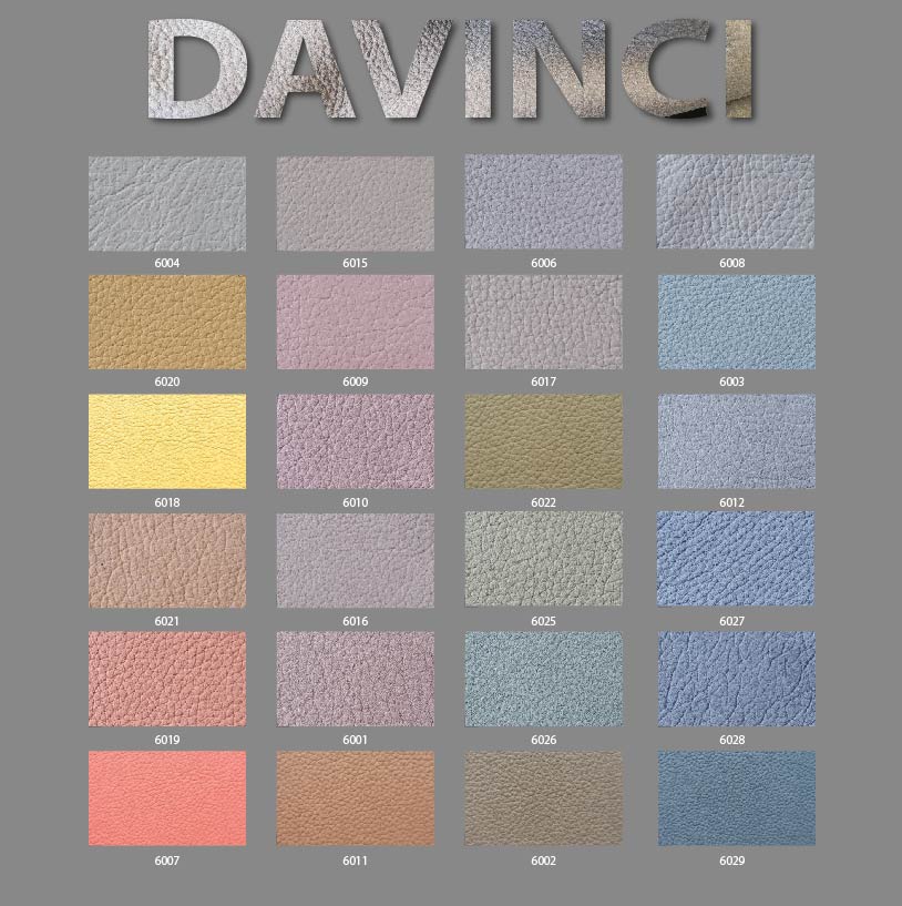 DaVinci has an elegant and refined look, with a light writing effect typical of nubuck leather, a very soft and full hand and an extraordinary resistance to stains.